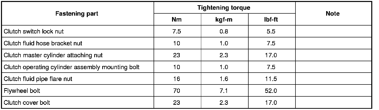 For the tightening torques of fasteners not specified in this section, refer to Fastener Information Fastener Information.