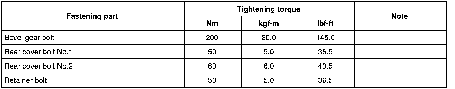 Tightening Torque Specifications