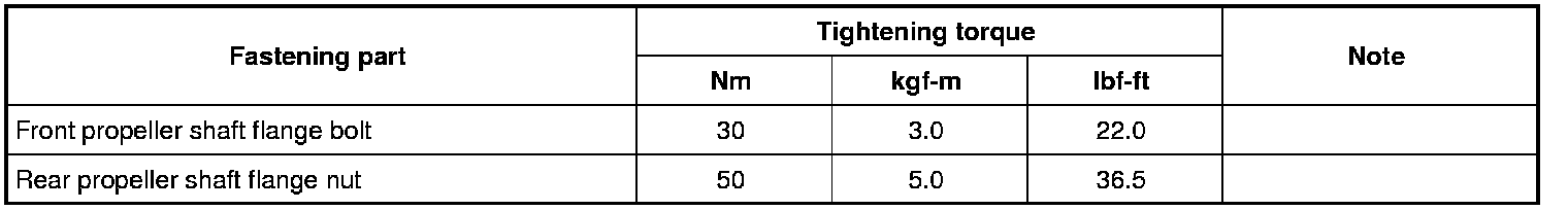 Tightening Torque Specifications