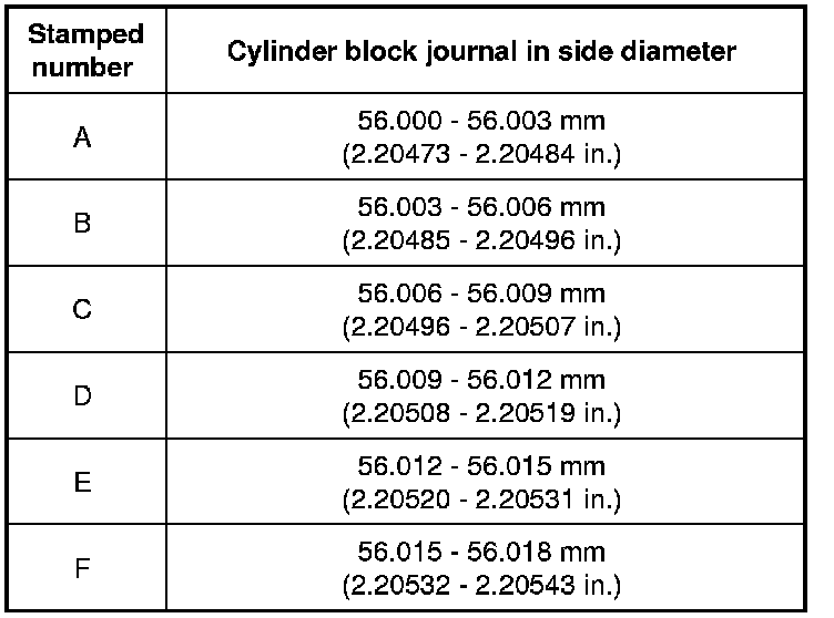 Cylinder Block Journal Inside Diameter