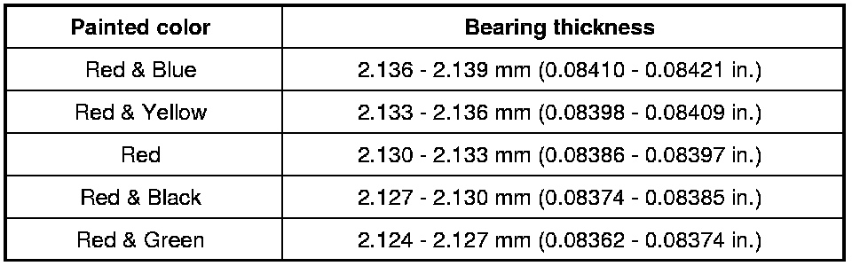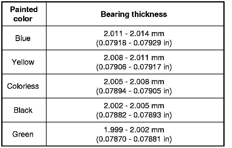Standard size crankshaft main bearing thickness