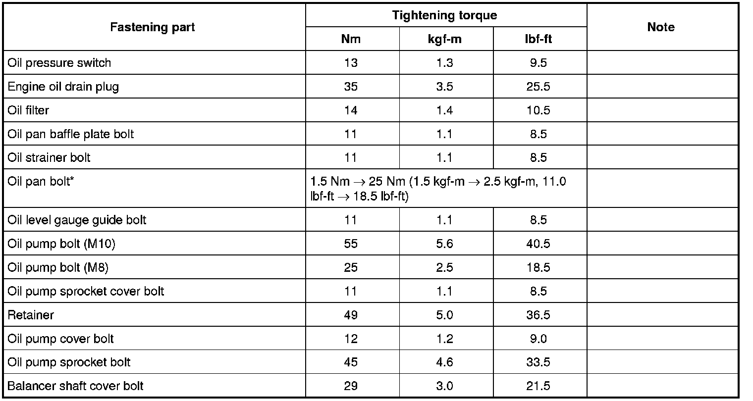For the tightening torques of fasteners not specified in this section, refer to Fastener Information Fastener Information.