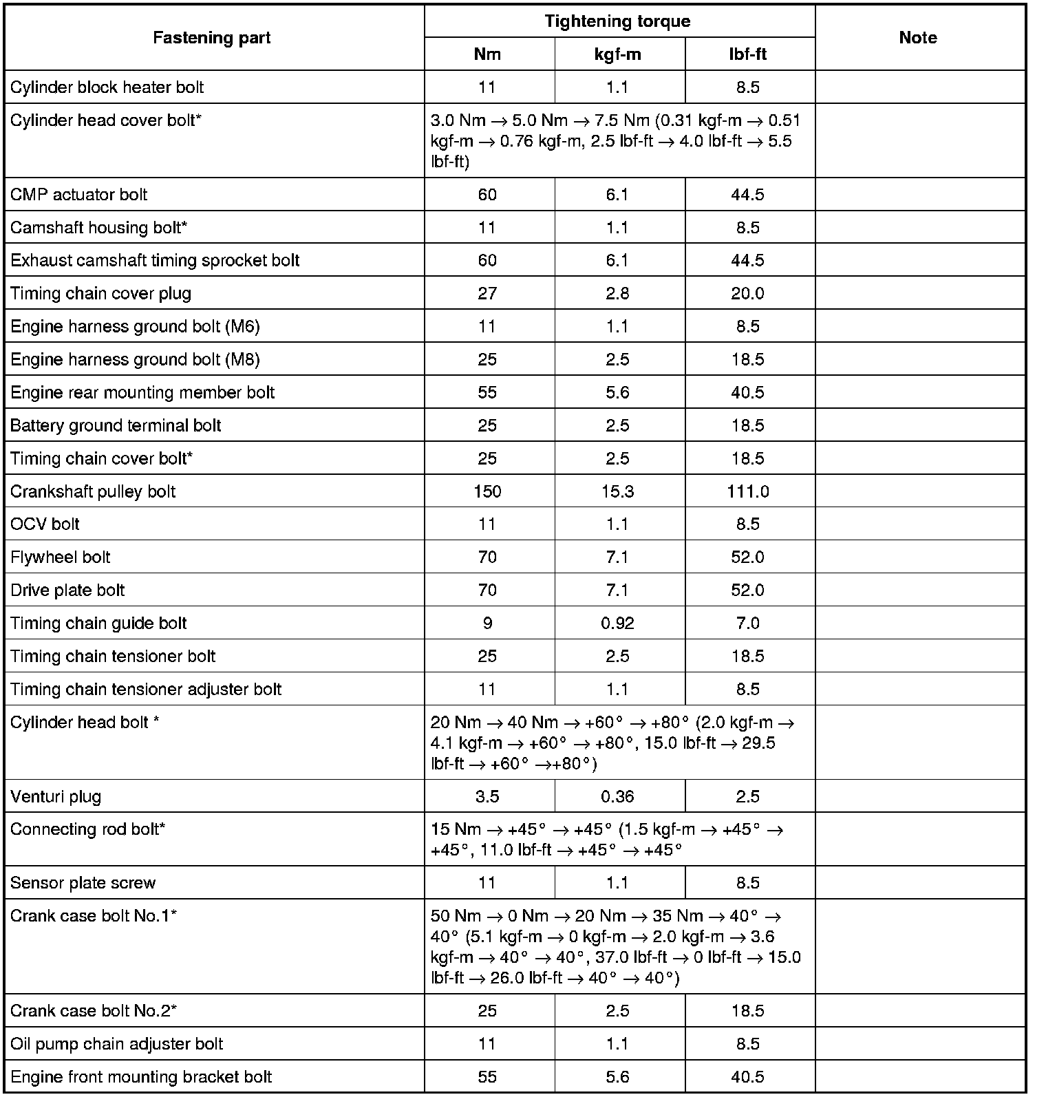 Tightening Torque Specifications