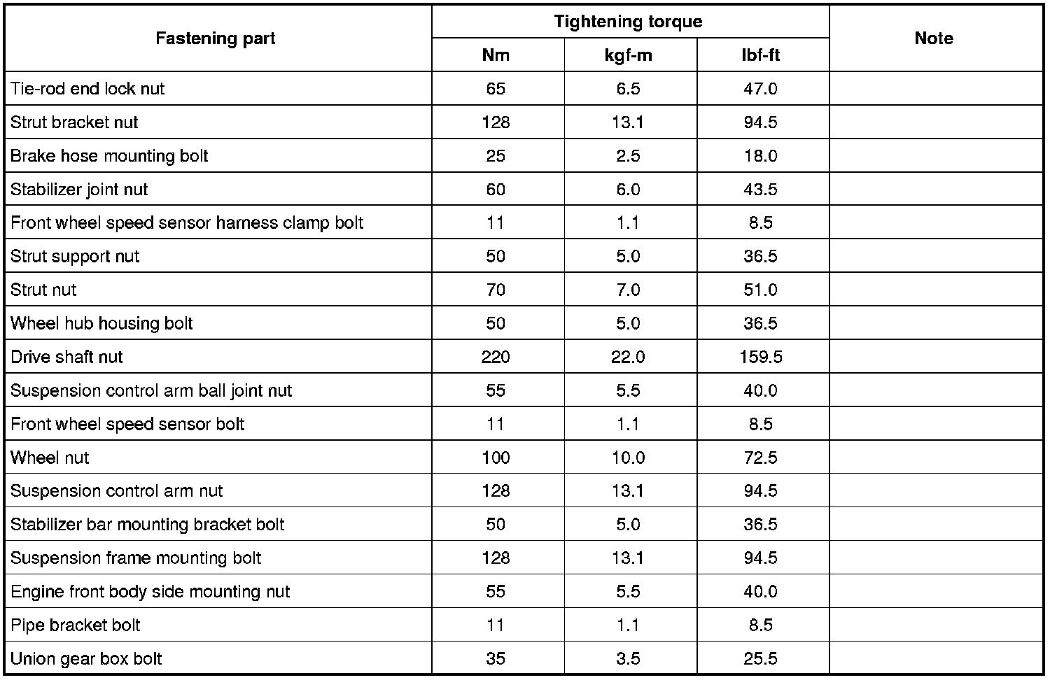 For the tightening torques of fasteners not specified in this section, refer to Fastener Information Fastener Information.