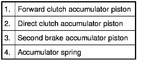 38) Apply A/T fluid to new O-ring and spring and install them to accumulator piston and install accumulator piston to transmission case.