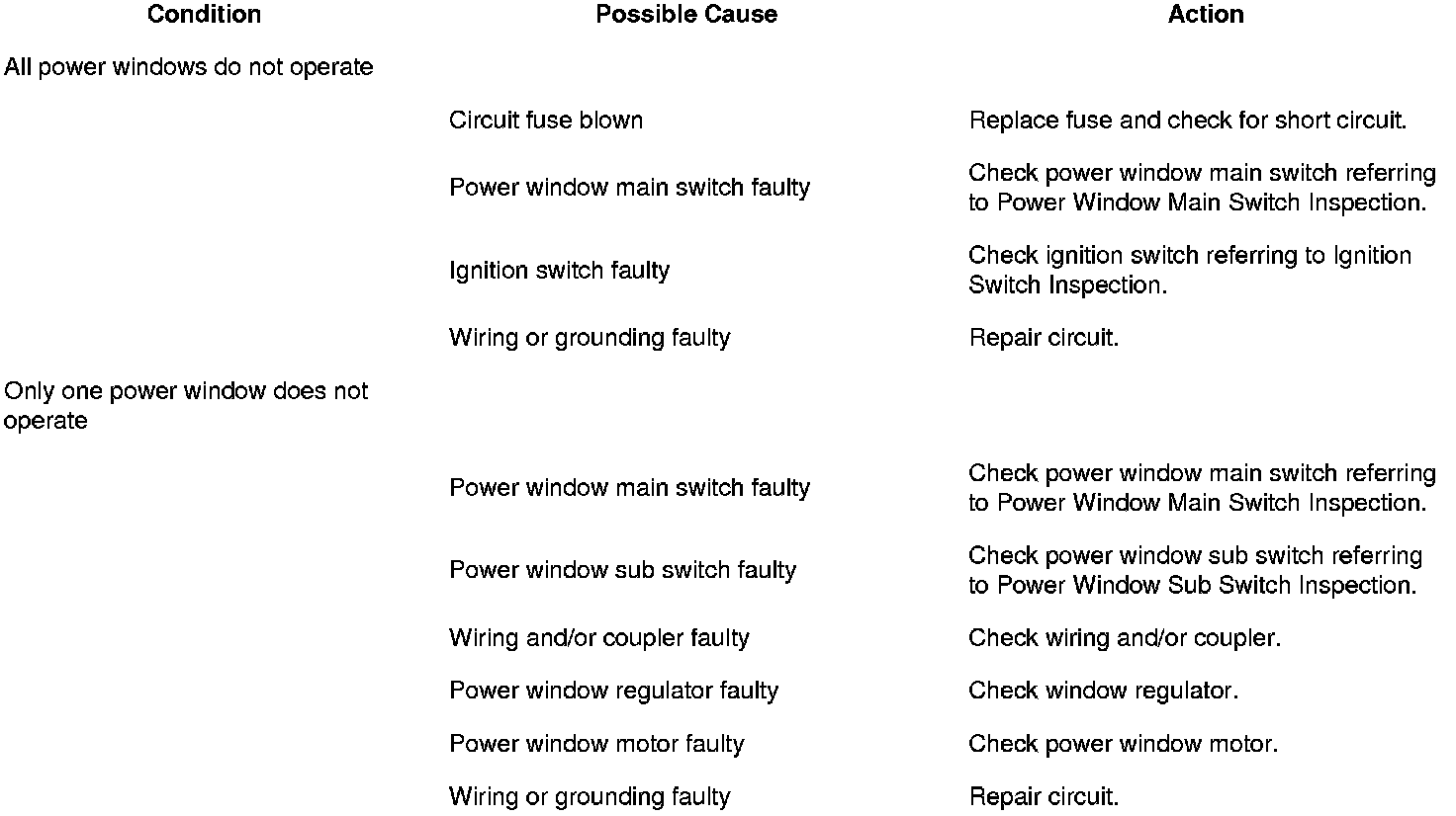 Power Window Control System Symptom Diagnosis