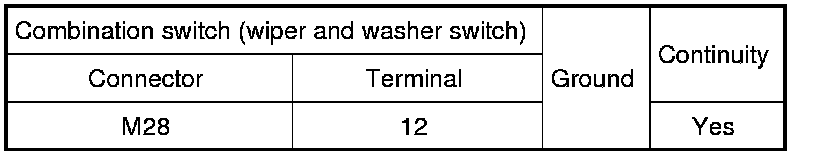 Check continuity between combination switch (wiper and washer switch) harness connector and ground.