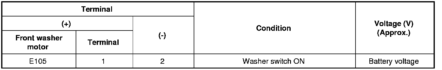 Check wiper and washer switch. Refer to [Washer Switch Circuit Check] Testing and Inspection.