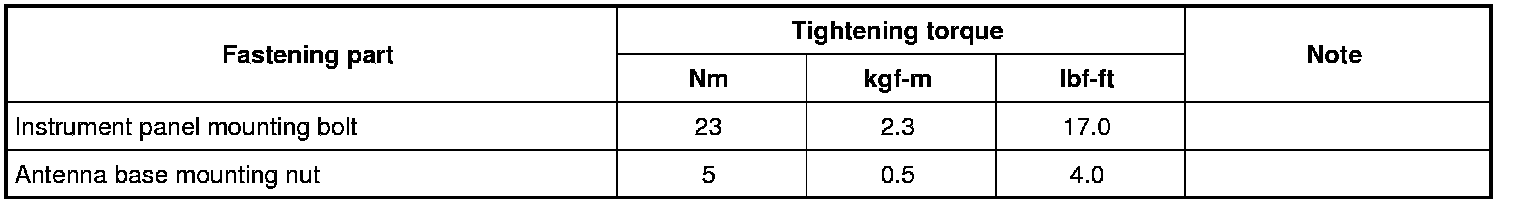 Tightening Torque Specifications