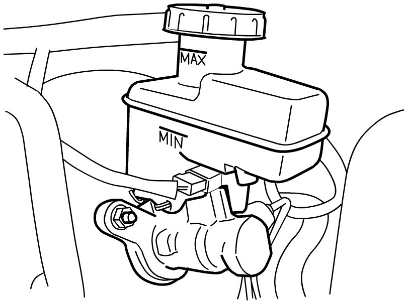 Fluid level should be between MIN and MAX lines marked on reservoir.