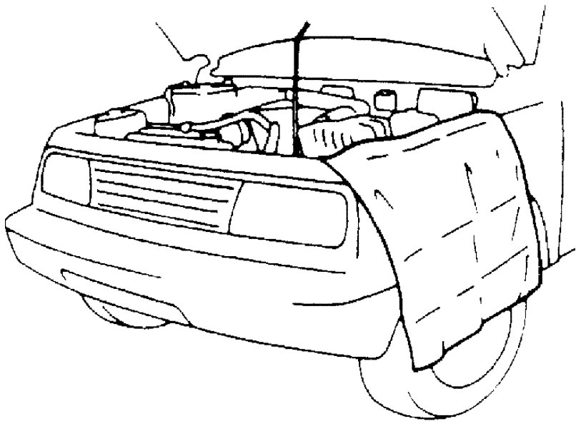 - If the service work being performed requires running the engine, make sure that the parking brake is fully set and the transmission is in Neutral (M/T model) or Park (A/T model). Also keep hands, hair, clothing, tools, etc. away from the fan and belts while the engine is running.
