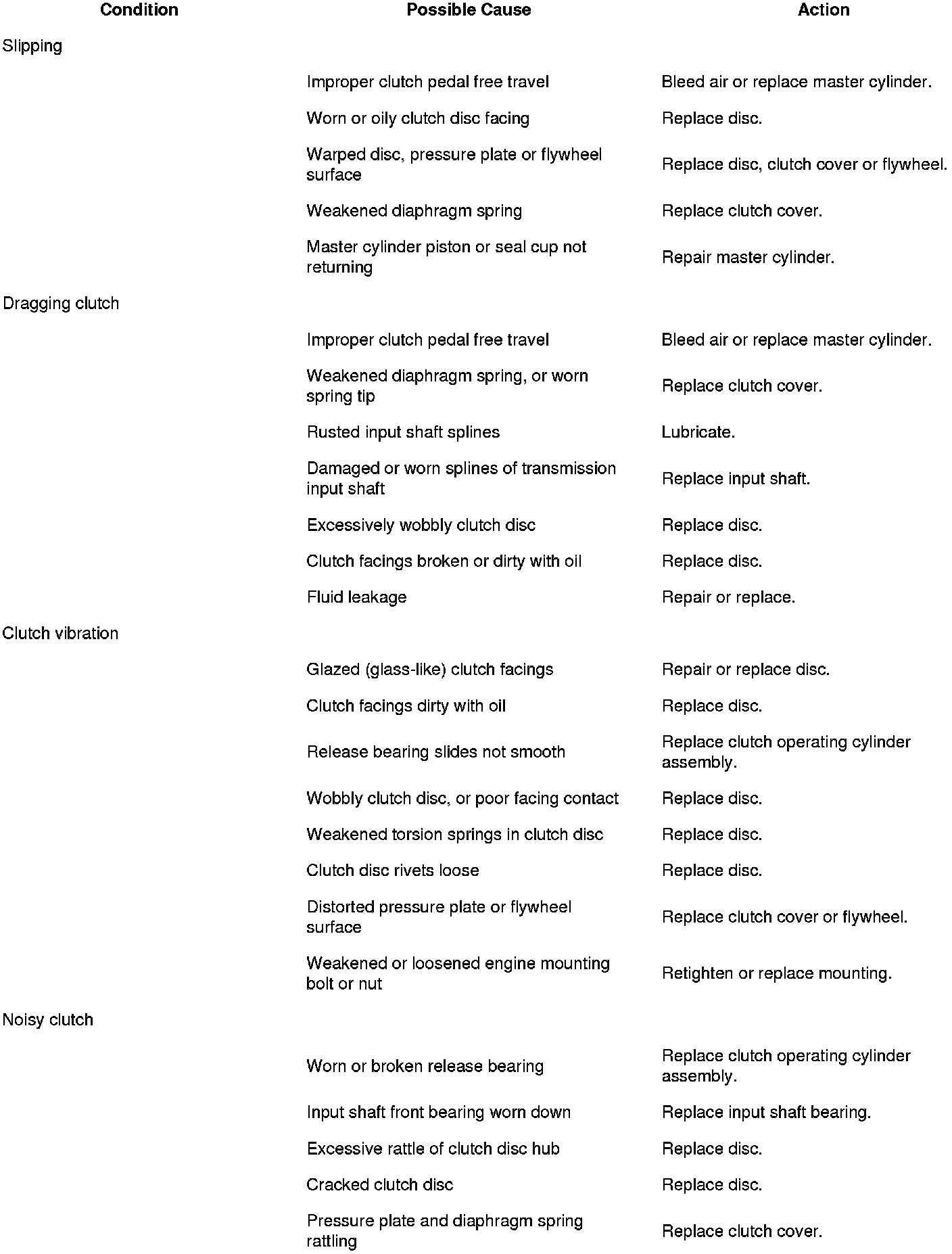 Clutch (Hydraulic Type) Symptom Diagnosis