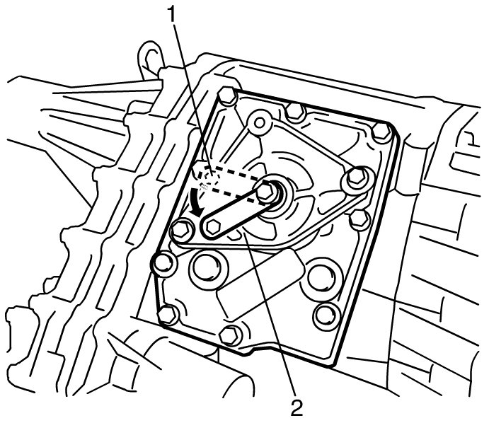 - Remove lever bolt (1) on transfer, push down lever to 4H-lock position (2) and fix lever with bolt.