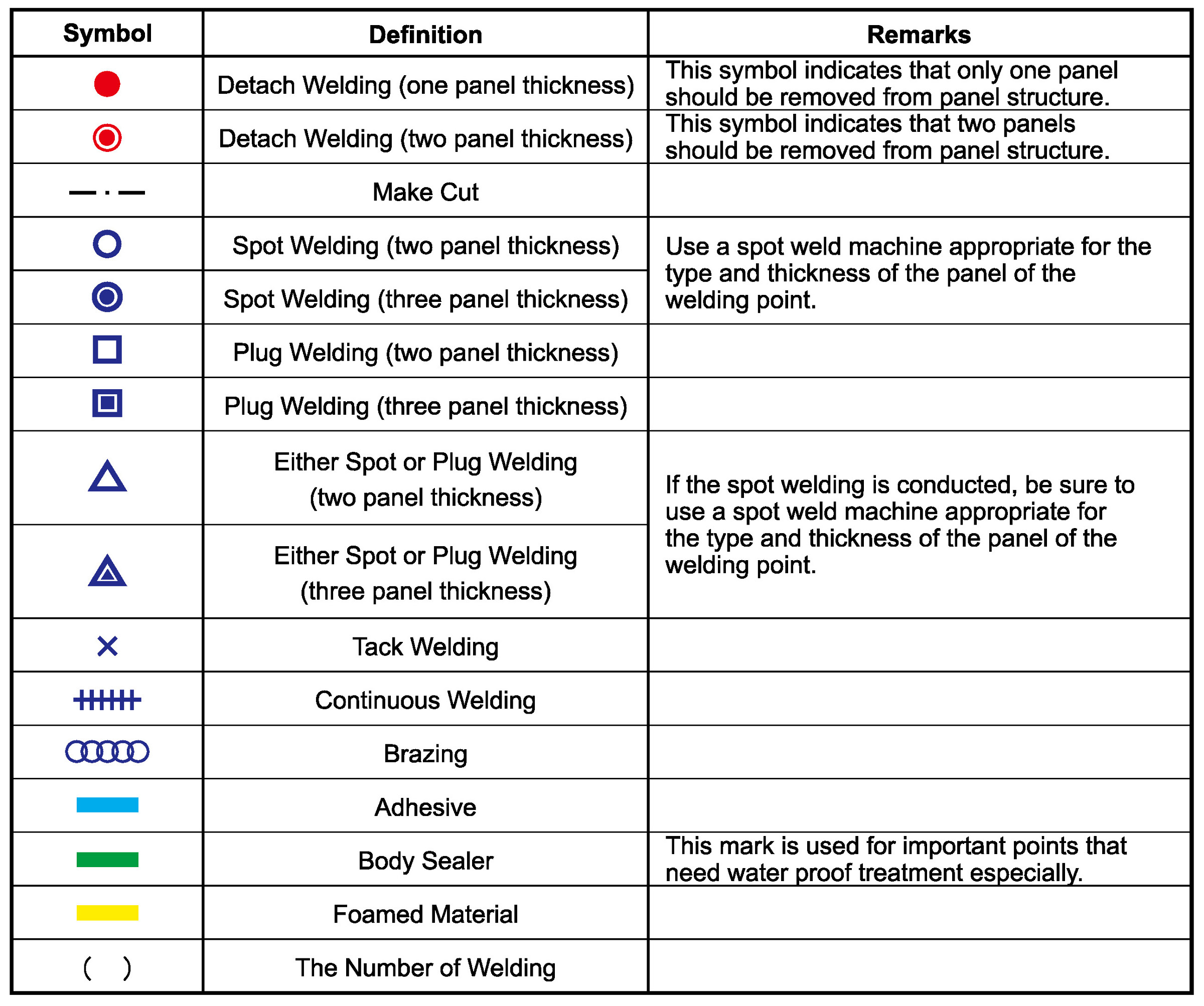 - Be noted that most of important information are inserted as symbols into every illustration. The following description of symbol definitions is essential for the body repair procedures.