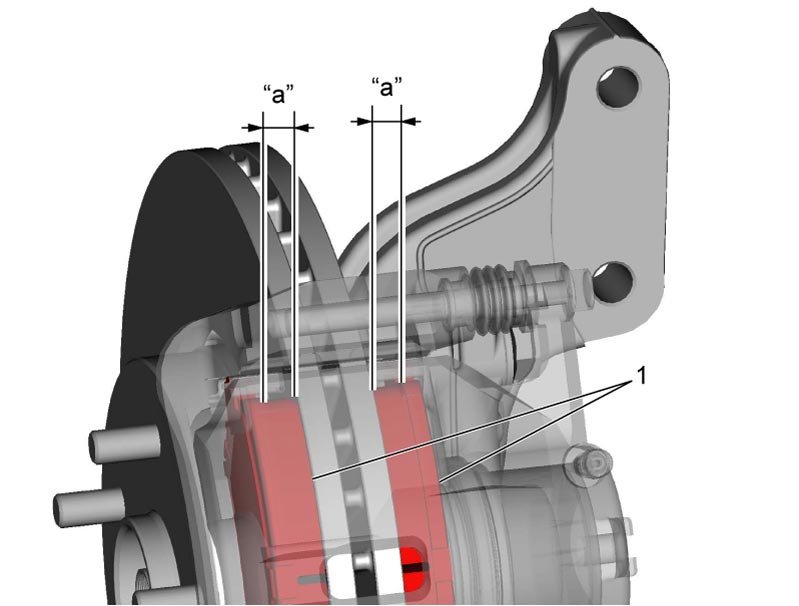 Front brake pad thickness (lining thickness) "a"