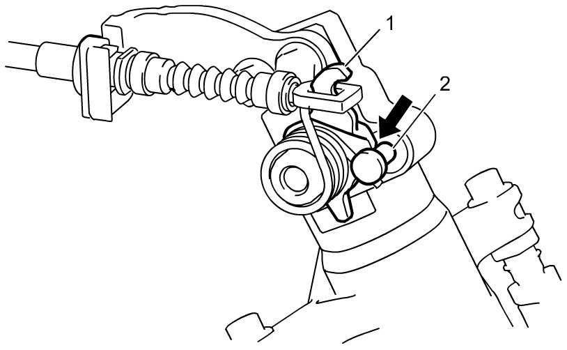 5) Stop engine and make sure that lever of caliper (1) contacts the pin (2). If the caliper does not contact the pin, repeat steps 3) and 4) again.