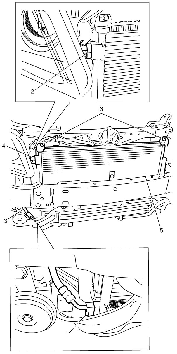 Condenser and radiator fins can easily be bent during removal of the condenser assembly.
