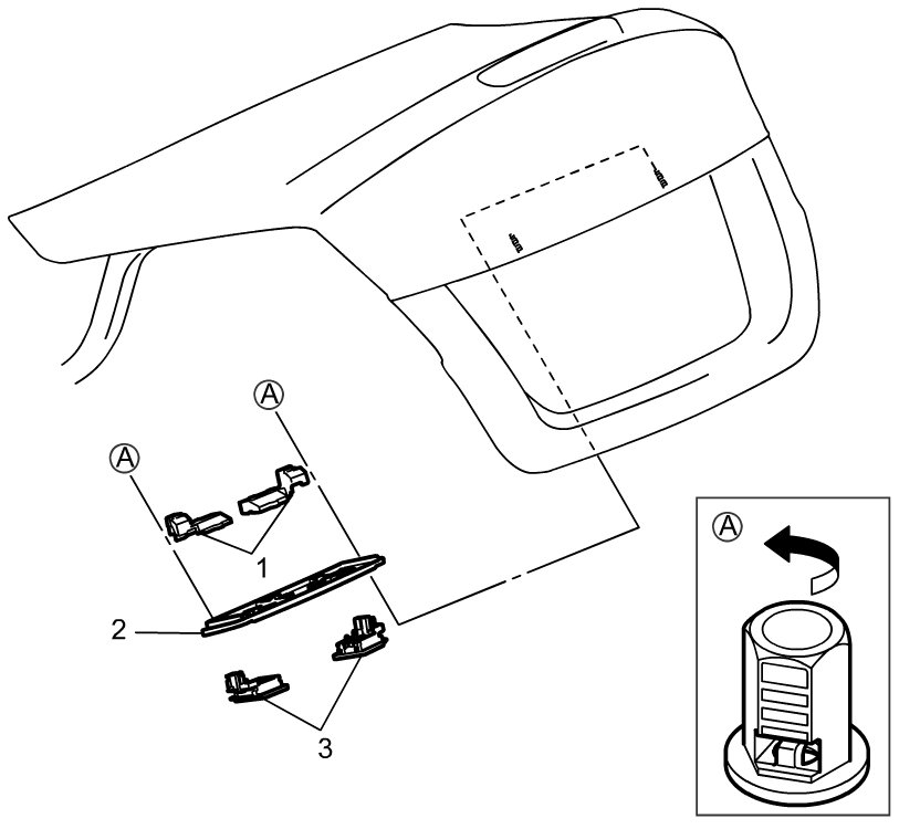 Remove license light bracket clips, and remove license light bracket (2).