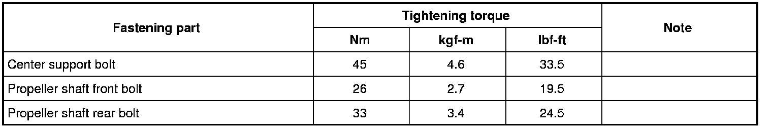 For the tightening torques of fasteners not specified in this section, refer to Fastener Information Fastener Information.
