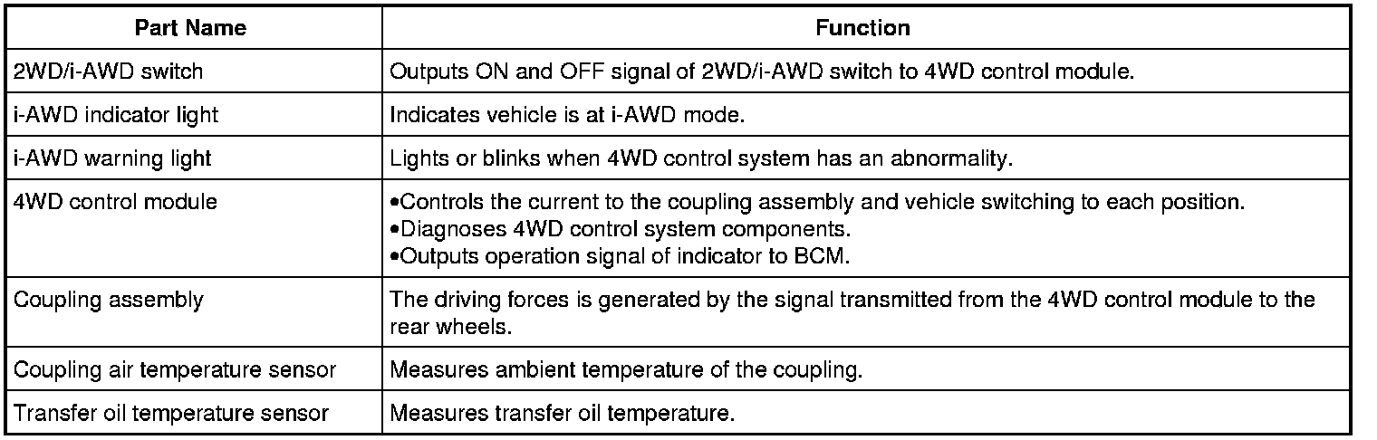 Description of 4WD Control System Component Function
