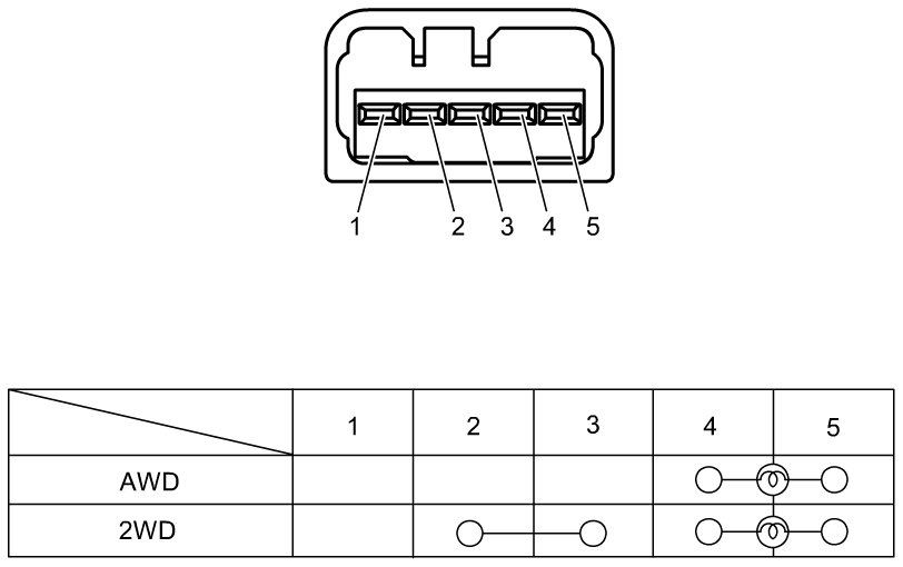 2WD/i-AWD Switch InspectionCheck 2WD/i-AWD switch for continuity between terminals at each switch position.