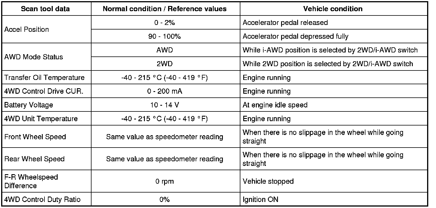 This parameter indicates i-AWD mode according to 2WD/i-AWD switch signal status detected by 4WD control module.