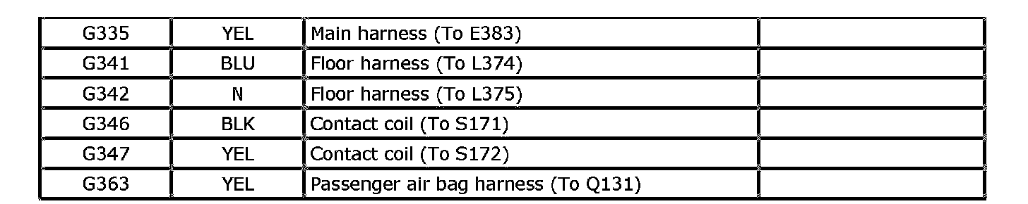 G: Instrument Panel Harness, Instrument Panel Audio Antenna Wire, USB Cable / Q: Passenger Air Bag Harness / S: Contact Coil