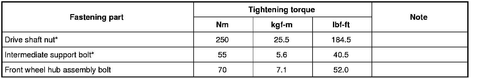 For the tightening torques of fasteners not specified in this section, refer to Fastener Information Fastener Information.