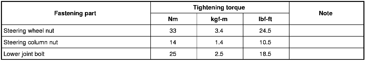 Tightening Torque Specifications