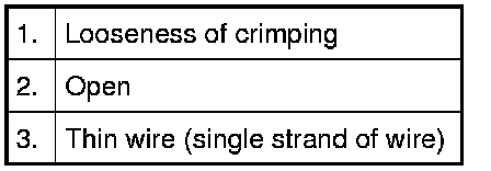 - Poor contact of terminal (due to dirt, corrosion or rust on it, poor contact tension, entry of foreign object, etc.)