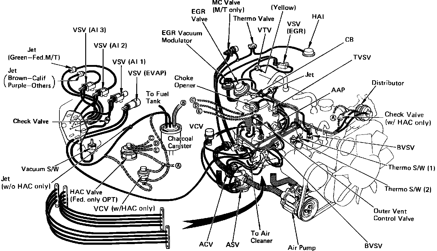 Fig. 10 Emission control system & engine compartment reference diagram.: