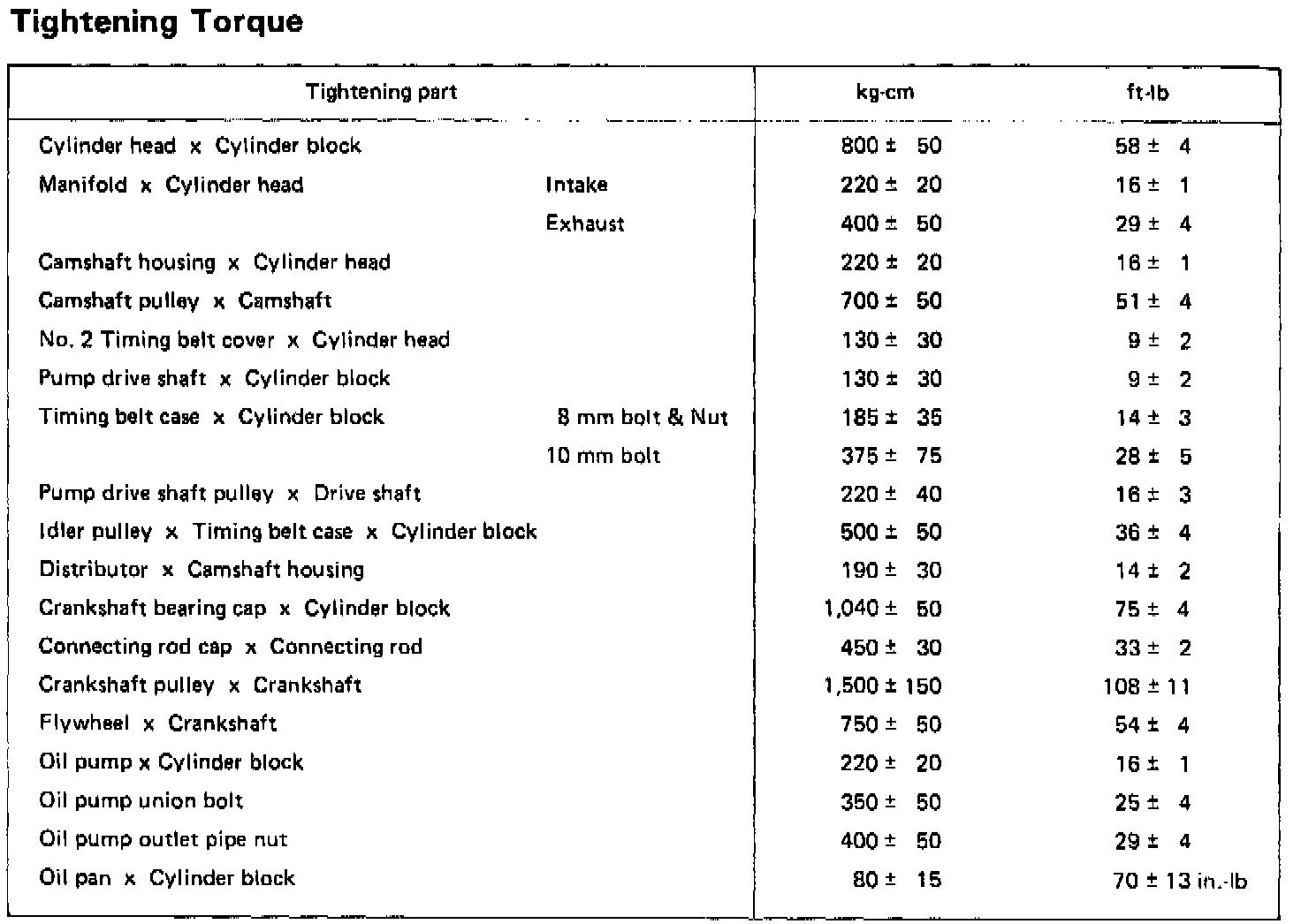 Torque Chart: