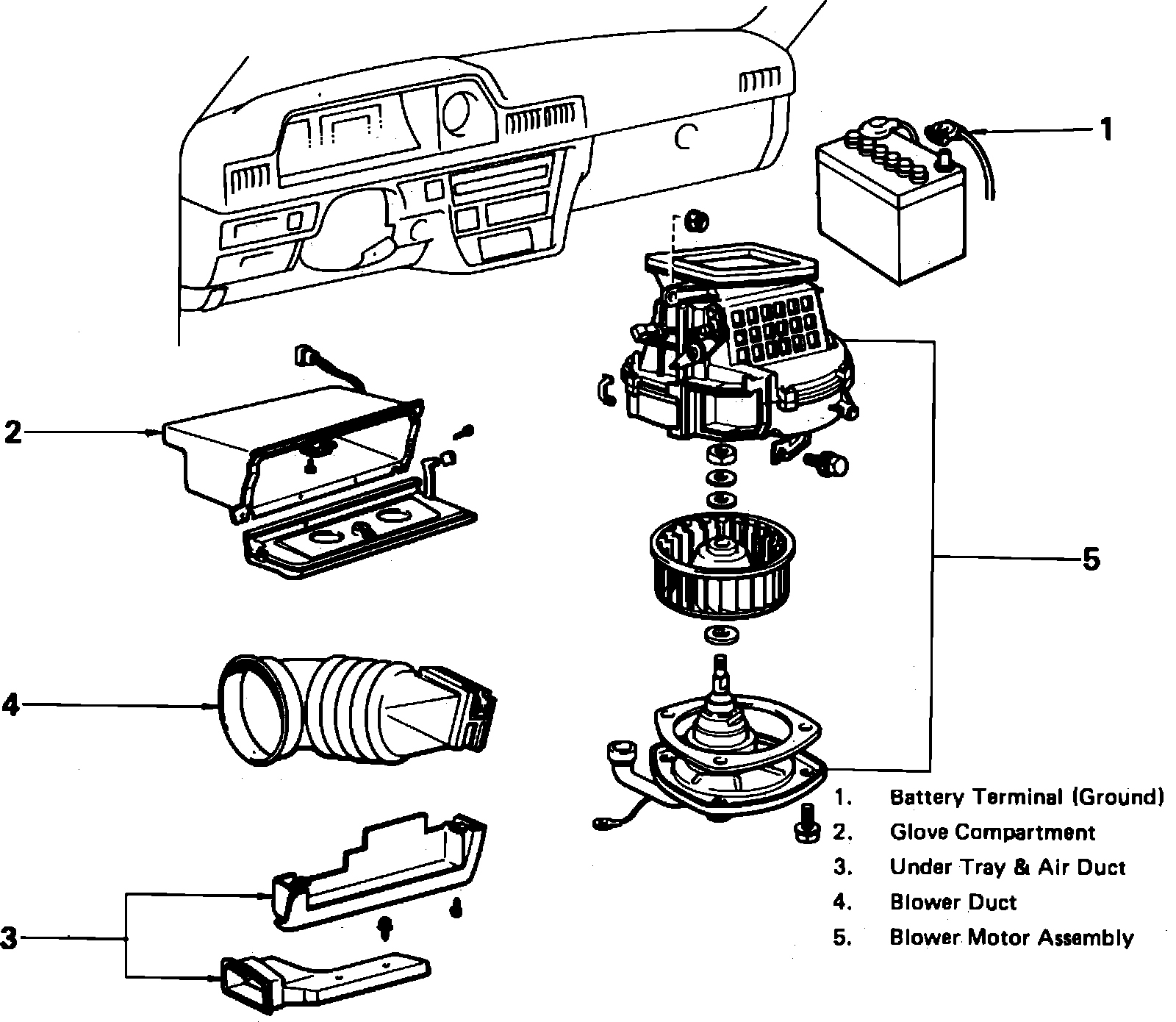 Fig. 3 Exploded View Of Heater Blower Motor, Less Automatic Air Conditioning.:
