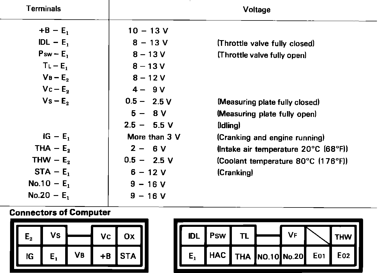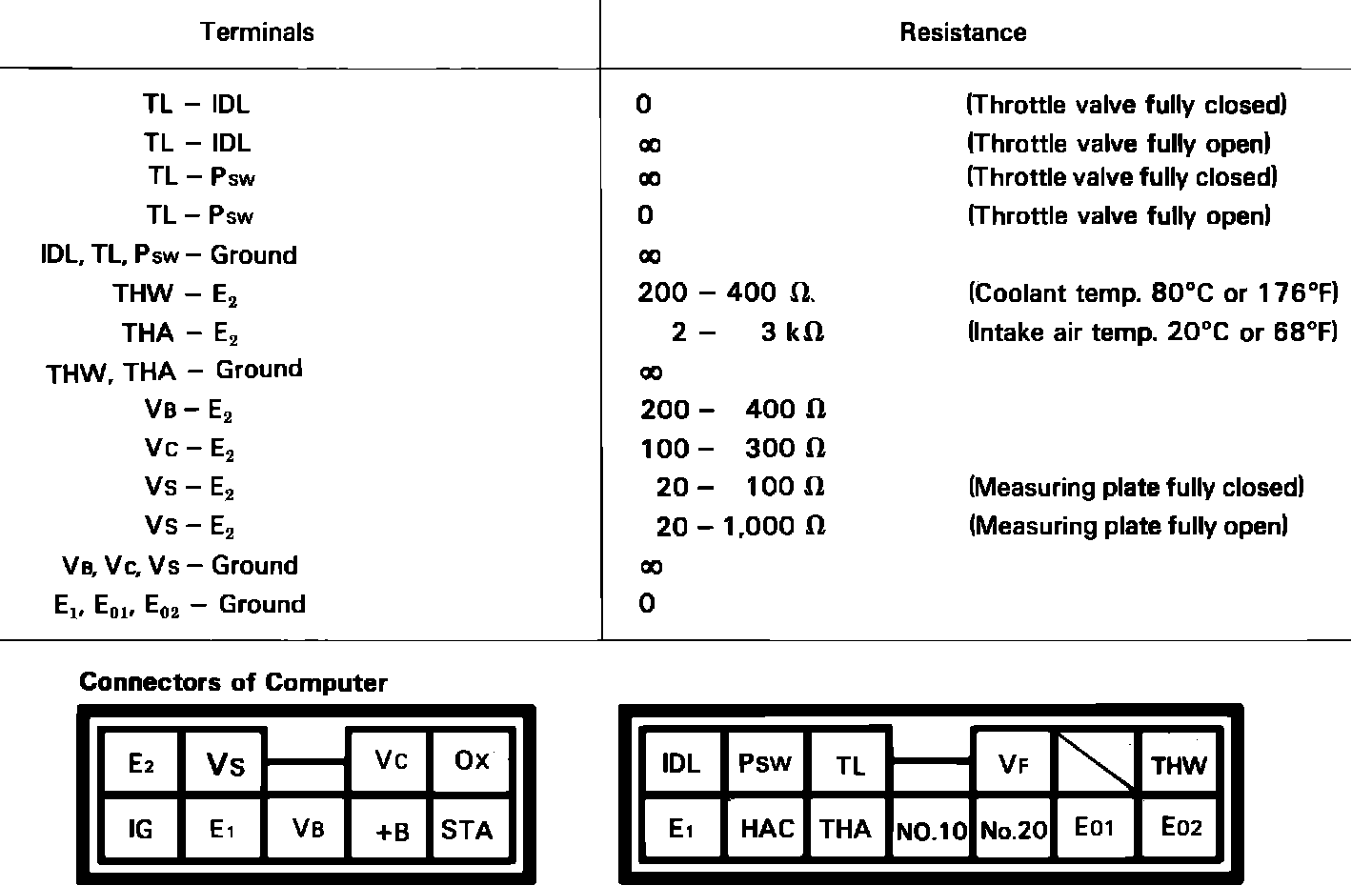 The following procedure allows separate inspection of each EFI circuit. This test is meant to be performed in conjunction with the troubleshooting, self diagnostic and component test procedures, and allows system wiring harnesses to be checked from the EFI computer connector.