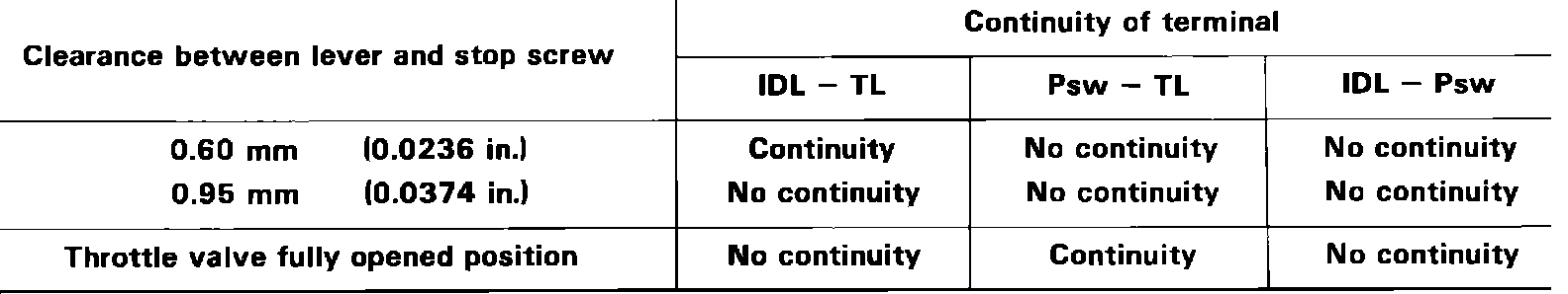 1. Ensure that throttle body is in satisfactory operating condition and that throttle valve closes fully.