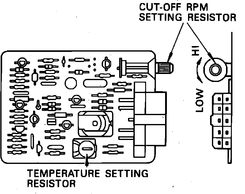 2. Turn variable resistor shaft, Fig. 15, counterclockwise if cut-off RPM is too high and clockwise if cut-off RPM is too low.