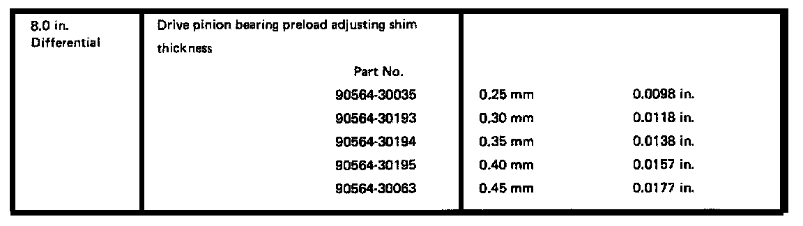8.0 Inch Differential, Pinion Preload Shim Thickness: