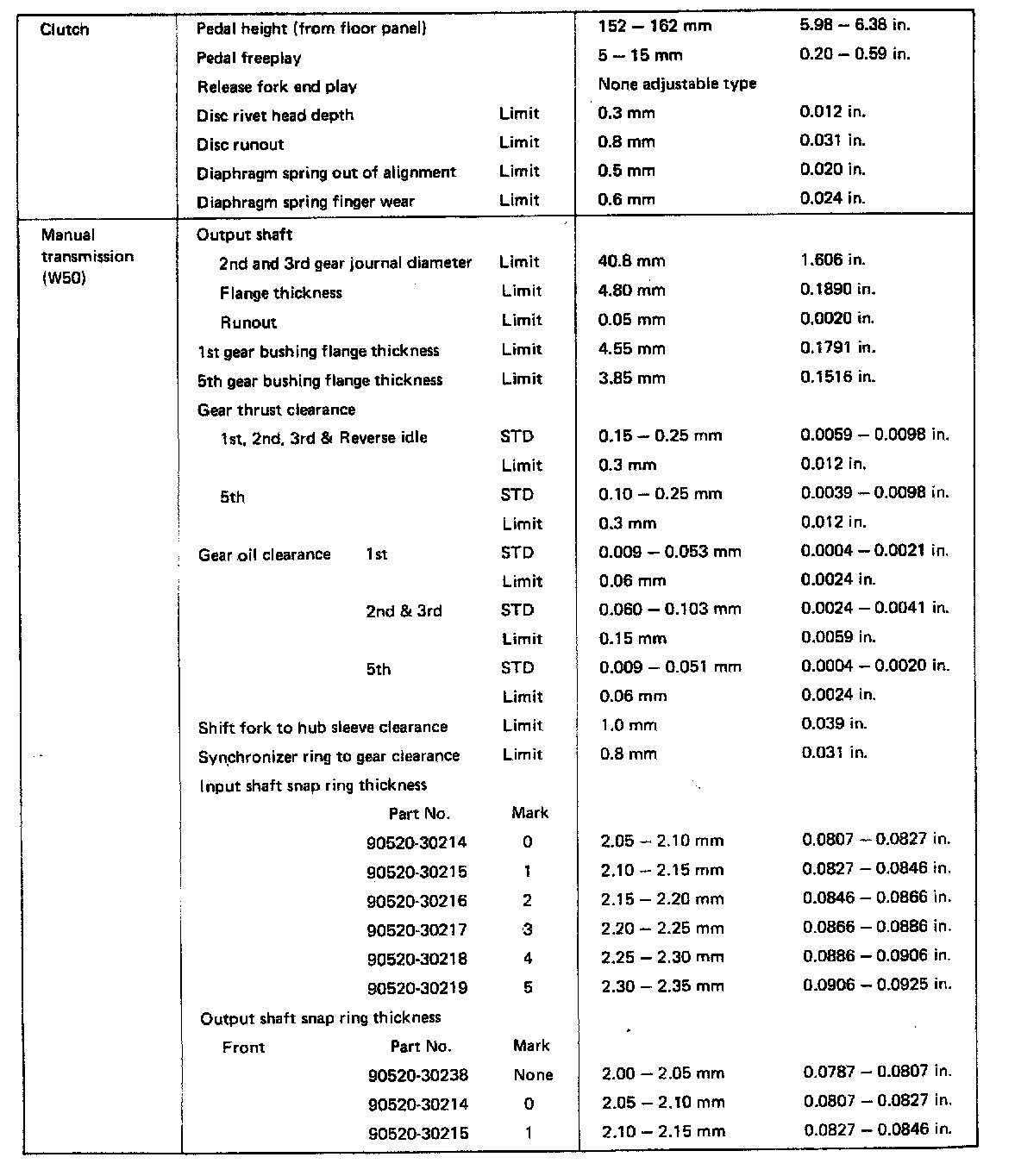 W50 5-spd M/T, Clutch/Transmission Clearance:
