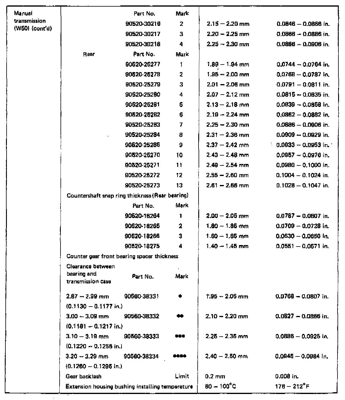 W50 5-spd M/T, Countershaft Thickness: