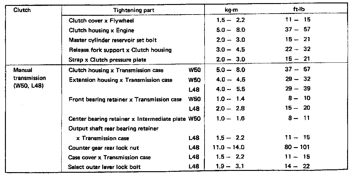 W50/L48 M/T, Transmission Torque: