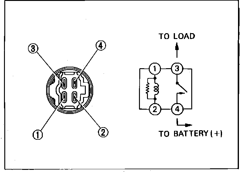 2. Check continuity between terminals 3 and 4, Fig. 5. No continuity should be present. Apply 12V battery voltage across terminals 1 and 2. Continuity should be present at terminals 3 and 4. Replace relay if defective.