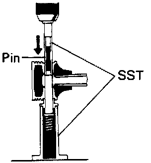 (b) Using SST, press in the piston pin.