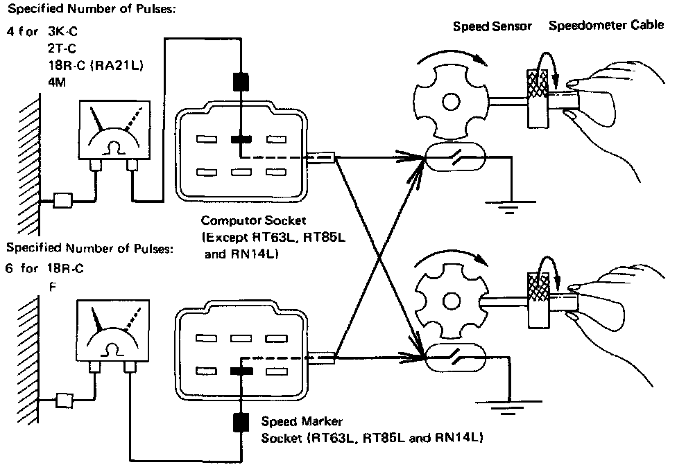 3. Rotate speedometer cable and record number of cycles indicated on the circuit tester for one complete revolution of the speedometer cable.