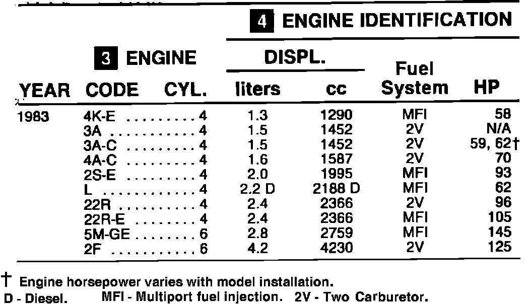 To identify an engine by the manufacturer's code, follow the four steps designated by the numbered blocks.