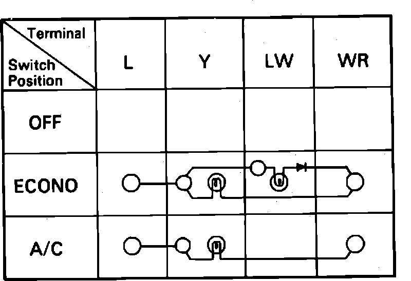 2. Using an ohmmeter, check continuity between specified switch position, Fig. 12 and A/C switch terminals.