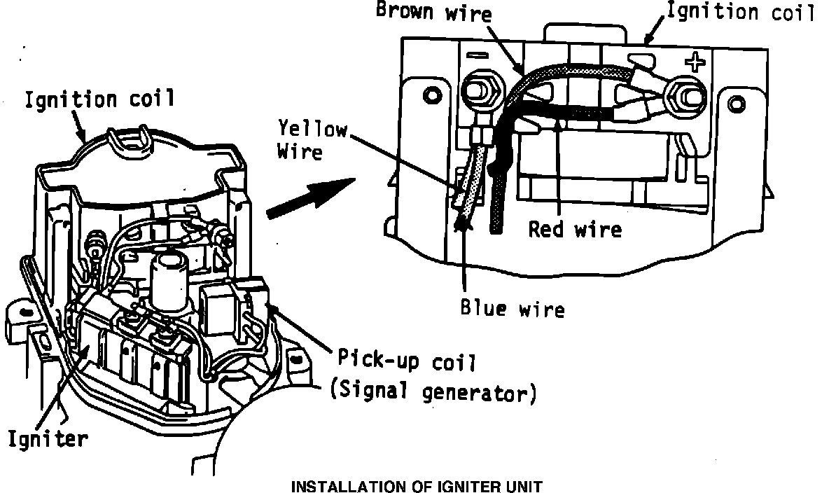 2) Install the pickup coil (signal generator) lead wire as indicated below: