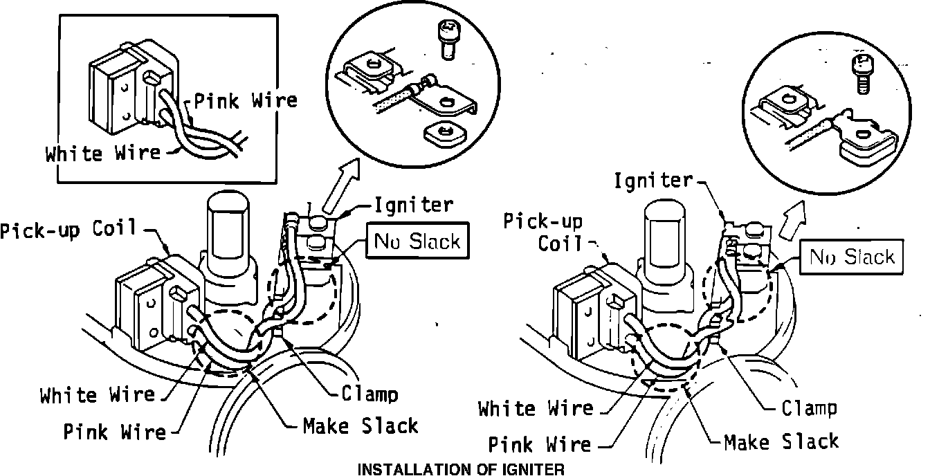 6. Route red and yellow wires from the igniter so that it will not contact any moving parts.