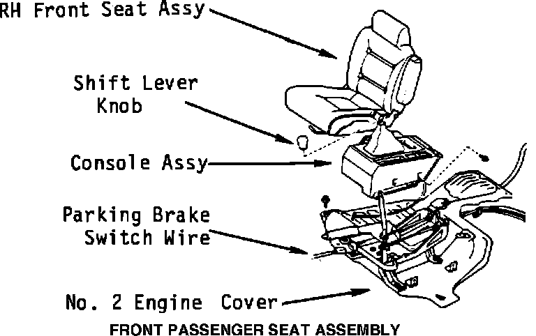 1. Check that ignition key is in the OFF position.FRONT PASSENGER SEAT ASSEMBLY:
