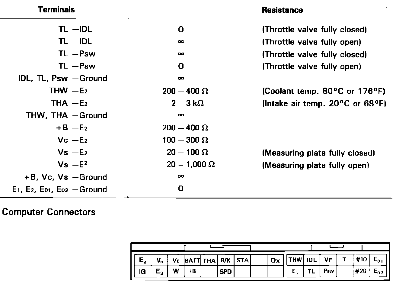 The following procedure allows separate inspection of each EFI circuit. This test is meant to be performed in conjunction with the troubleshooting, self diagnostic and component test procedures, and allows system wiring harnesses to be checked from the EFI computer connector.