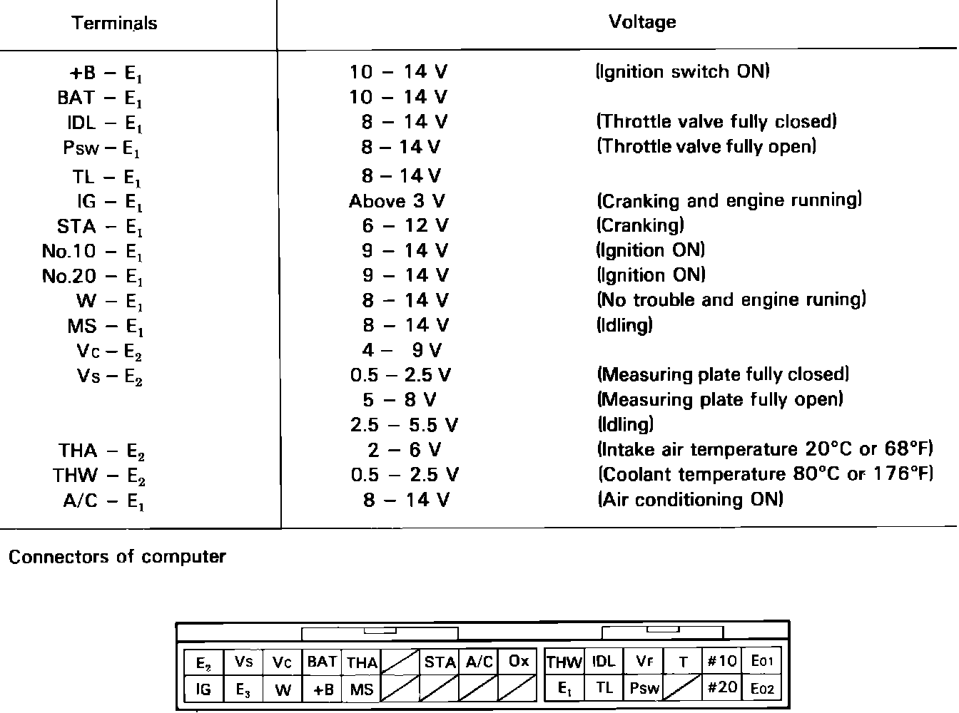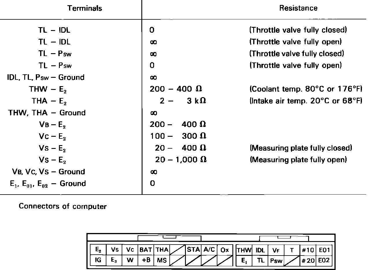 The following procedure allows separate inspection of each EFI circuit. This test is meant to be performed in conjunction with the troubleshooting, self diagnostic and component test procedures, and allows system wiring harnesses to be checked from the EFI computer connector.
